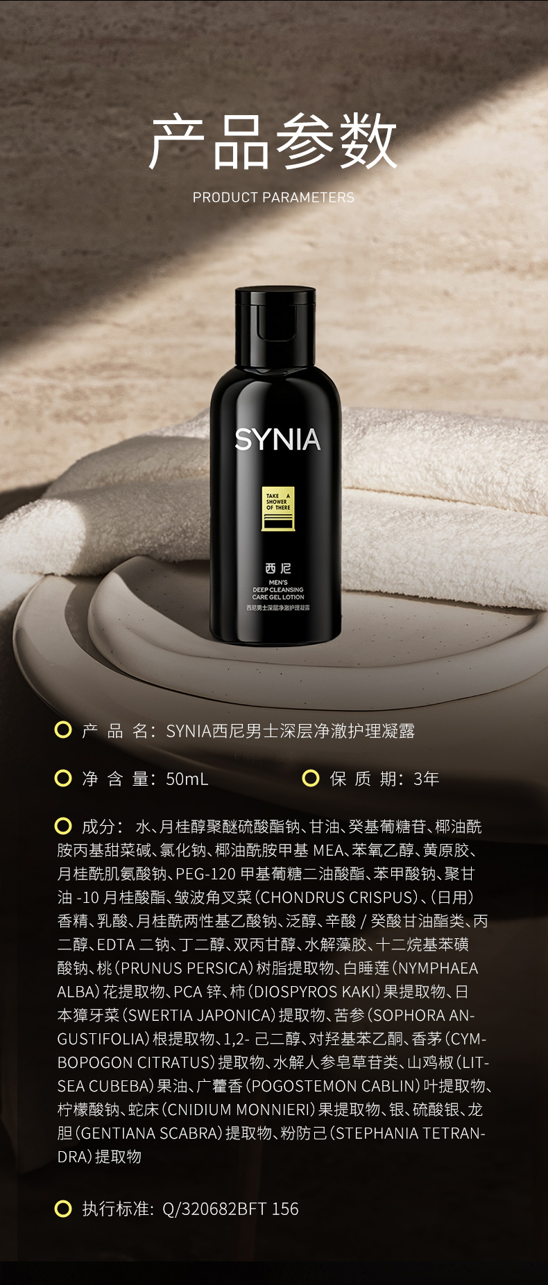 【护理保健】男士清新净爽护理液50ml synia西尼(CP)箱规:60/箱。注:新旧包装交替发货、彩盒有细微改动,以收到的实物为准。 注:此品牌无授权禁止上架天猫、京东、拼多多及1688平台。标准零售价:9.9元。