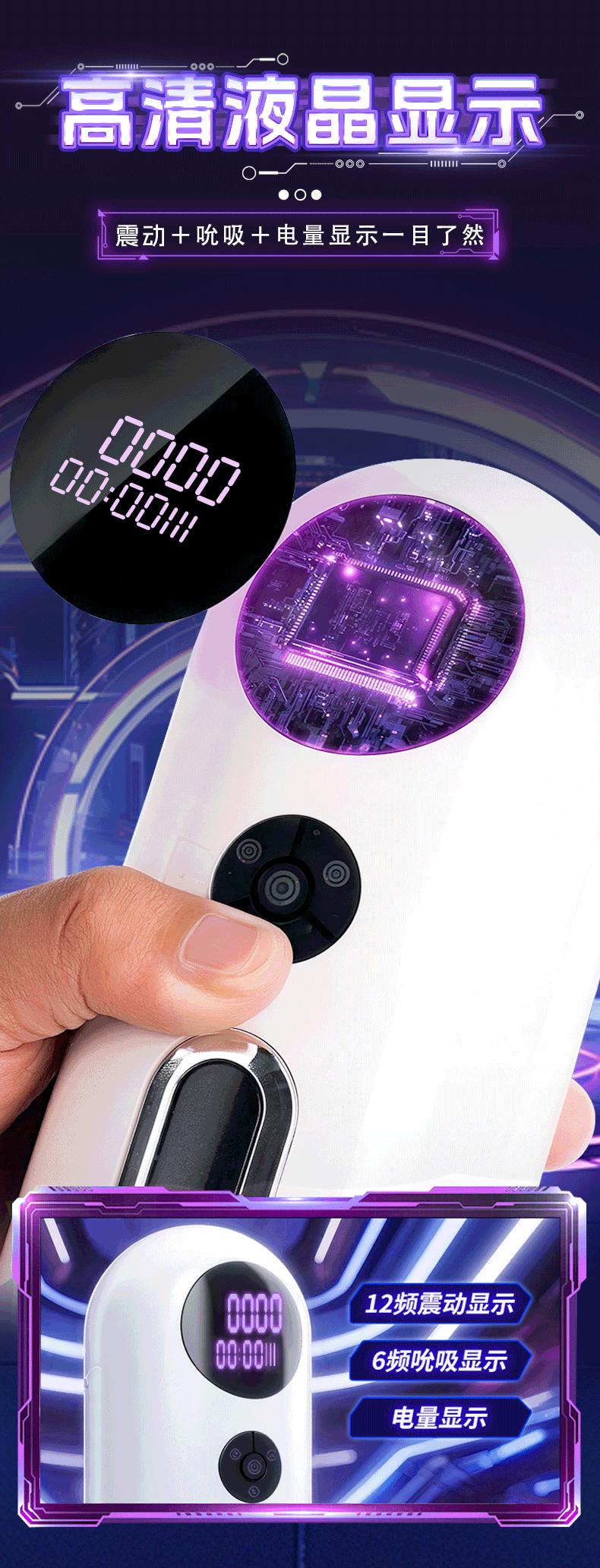 产品功能:伸缩,夹吸,震动,加温,4国发音